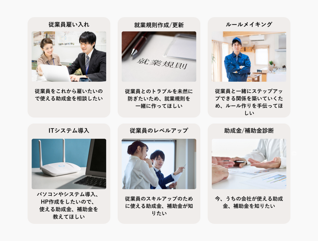 ●申請を代行するだけでなく、「いつ、どんな時に助成金や補助金を使えばいいのか」を専門家としてアドバイスをくれる社労士を探している